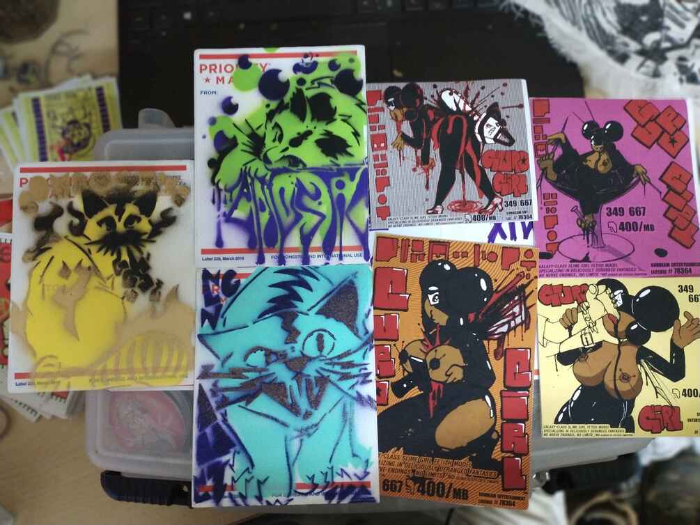Everything with outdated character designs on it, basically all of the old Breadwarp concept shit, while supplies last. Always has at least 9 stickers, 9 pins, and a zine. Up to 16 stickers the sooner you order.