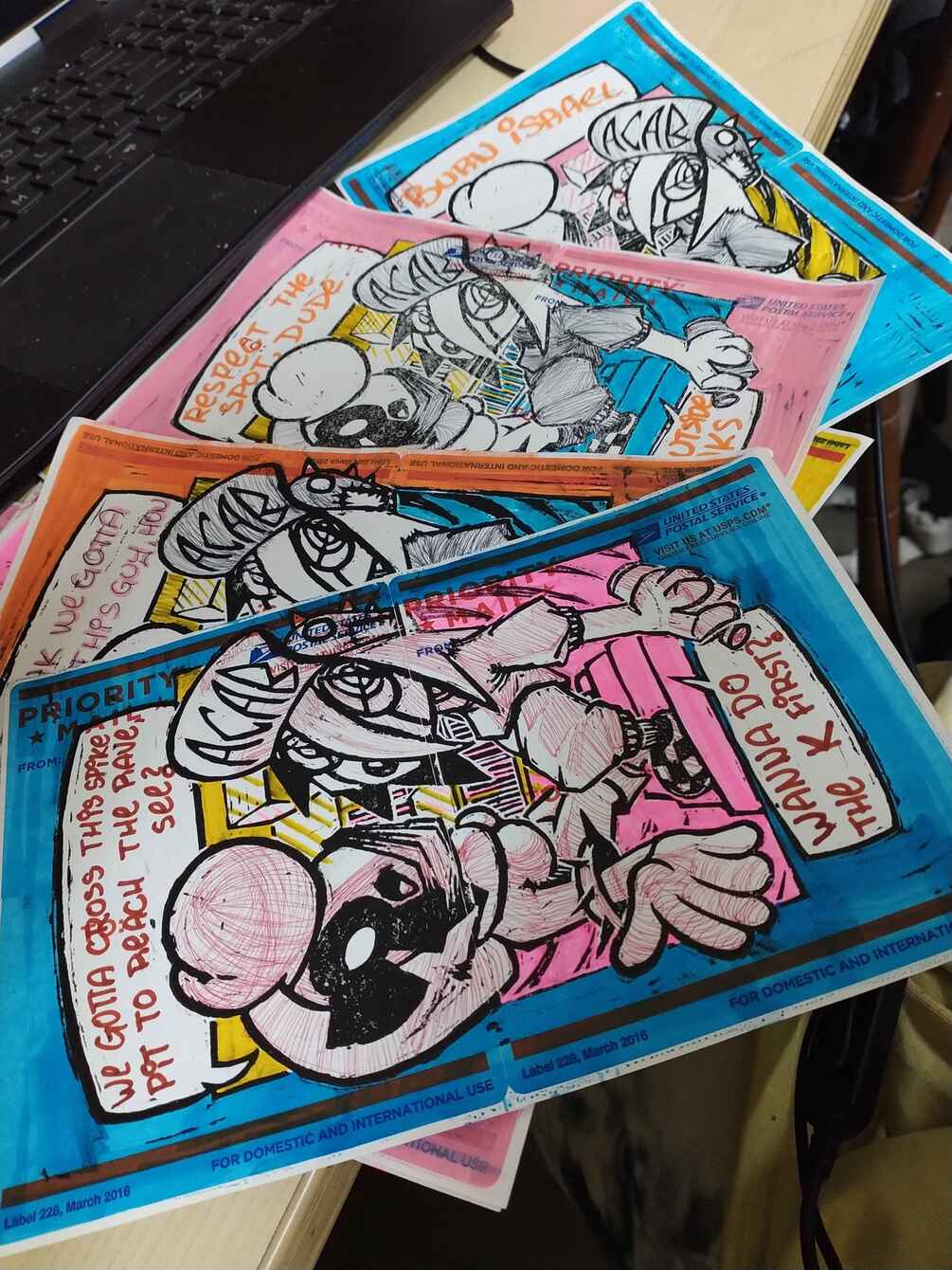Printed linework, hand colored and shaded. Each sticker has a different conversation on it. I have blanks if you want me to write something specific, just message me.